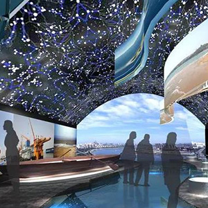 由多塊銀幕組成,通過多臺投影機,采用投影融合技術,創造出超大無縫的逼真畫面。利用電影自身特有的技術優勢,使觀眾在高質量的聲畫環境包圍之中,產生身臨其境的強烈的現場 ……